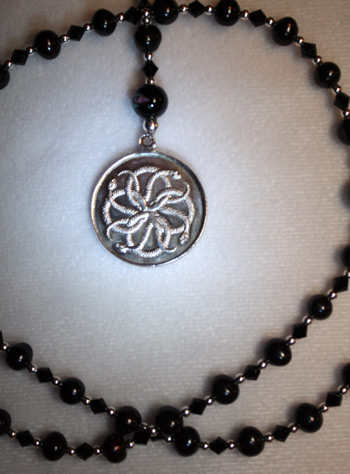 A Cerridwen “locket” rosary, and a new style of Lilith pendant, both in sterling silver.